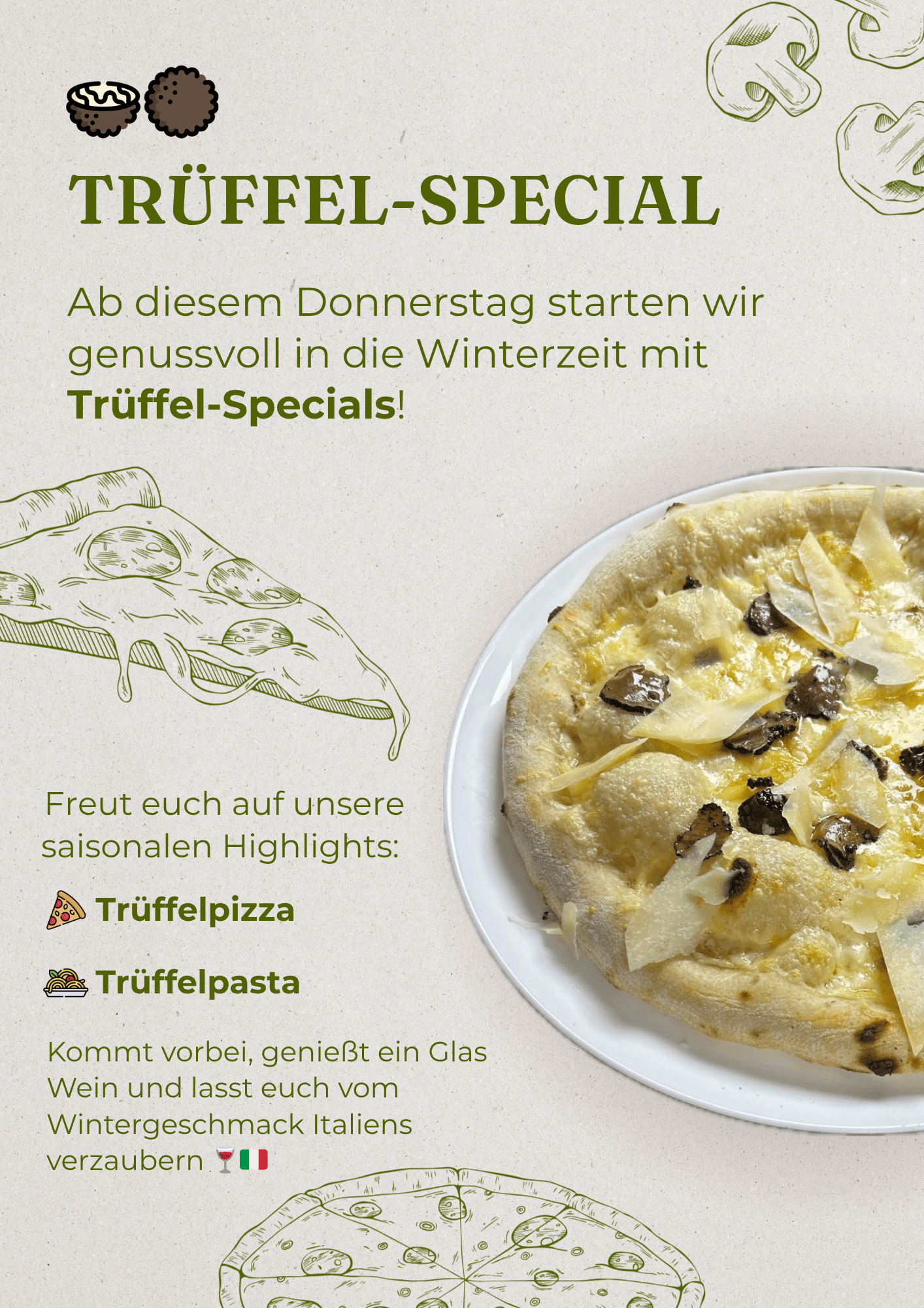 Ab Donnerstag gibt’s bei uns Trüffelpasta & Trüffelpizza – perfekt für kalte Wintertage ❄️